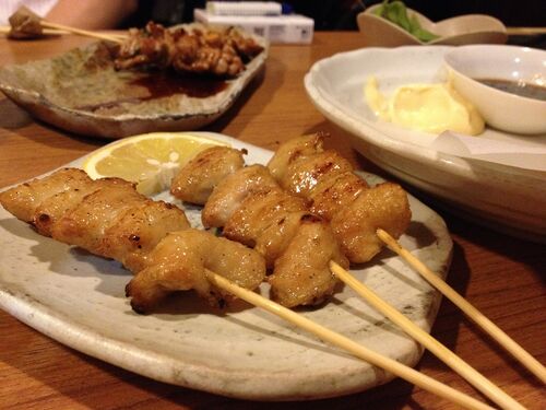 コラーゲンのかたまり、ぼんじりです。 脂がすごいですっ。ひとくちごとに、ビールがすすむすすむ。 ネギマ。炭火焼で芳ばしくなっているタレ、これぞ焼き鳥!って串ですねー! つくね。万人に受け入れられているであろう人気の一串ですね。 さぁ焼き立てを…