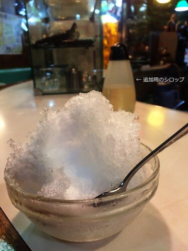 まだやってるよん。かき氷☆ こちらのかき氷は、全体の2割くらいにしかシロップがかかっていないところがベリーGOOD。 お好みでシロップを追加してくださいとのこと。 気がきいてるぅ~っ! 時に かき氷注文するとドバドバとシロップがかかっていて、甘すぎて…