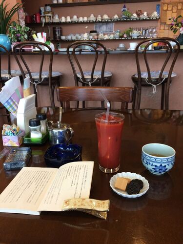 アイスコーヒー注文したら、 「冬はアイスやってないんです..すみません..」 って言われた。あ、そうだった、忘れてた(笑) 前回も同じこと言われたんだった(汗) じゃぁ、、 トマトジュースおねがいしまぁーす! 今日はクッキーがついてきたよ☆わーい☆彡 …