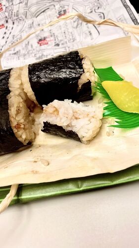 1個目を食べたときに、しば漬けの具が入っていたので、 まだ動揺してます。。まさかの、具入り俵むすび! つづいて、2個目ぱく。。 ? しば漬けが入ってない? ふむ。 でも、これはこれで美味しいよ☆彡 んーなんでだろー?なんか、梅の風味が。。 ああっ! …