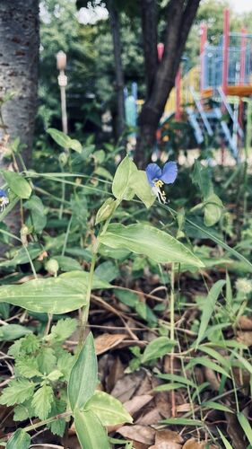 朝か昼かわからないけど、日中に咲いている、アサガオみたいな、あの花はなんなんだろう(笑) って、毎年この季節、 大阪の町を歩くたび疑問に思ってるよ(笑) んで、たいてい、その「アサガオ」みたいな形の花は、群青色です。 とてもきれいです。