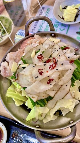 こちらのお店は福岡のチェーン店だから、もつ鍋があるんよね☆彡 しょうゆ味か、味噌味を選べるんだけど、 しょうゆ味を選択!!! 味噌味にしたら、関西のどて煮込みみたいになるかなーって..でも、それはそれで別のジャンルで、ふだん食べてるから、 やっぱ…