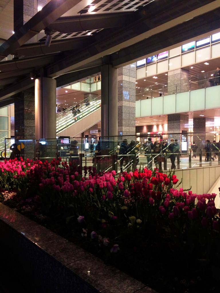 2019-02-17 ★夜のチューリップ 201902-4 大阪駅 大阪 植物 普段の街並み 不穏さが想像をかき立てる。太陽にふさわしいはずのチューリップが夜に紅く濡れるとは。 それは置いておいて、語感では、 『夜のピクニック:恩田 陸』がうかぶ。 読み進むほど心切なく痛くなるのに、全編、反論の余地ない爽やかさで貫かれている。 思い出。 数年前、営業車で大阪⇔和歌山南部を片道5時間かけて移動していた頃、 助手席に乗っていた私は車内の退屈しのぎで『夜のピクニック:恩田 陸』を3周ほど絵本みたいに音読してました(←ウザい?